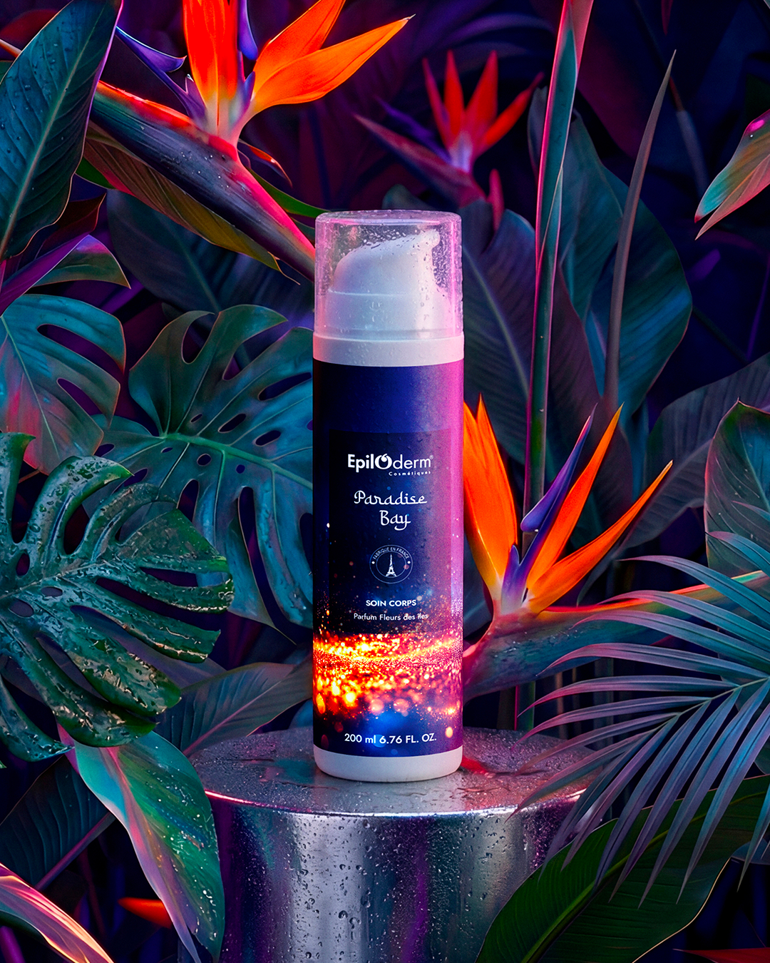 Paradise Bay est un soin corporel composé d’actifs reconnus pour leurs vertus apaisantes et hydratantes, associés à un actif végétal anti-repousse haute concentration breveté. Véritable innovation, Paradise Bay est le premier gel en huile dédié au soin d’épilation Epiloderm. Son parfum Fleurs des îles, aux notes exotiques, laisse sur la peau une sensation douce et délicate.